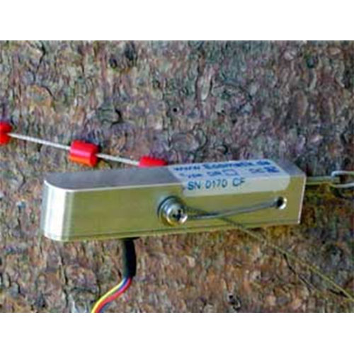 DC1是測(cè)量植物周長(zhǎng)變化的簡(jiǎn)單版本。傳感器通過(guò)一個(gè)由熱膨脹系數(shù)低的合金制成的鋼絲繩固定在樹(shù)上。用小塑料環(huán)減少鋼絲繩對(duì)樹(shù)的壓力,并減少摩擦阻力,大大提高靈敏度。