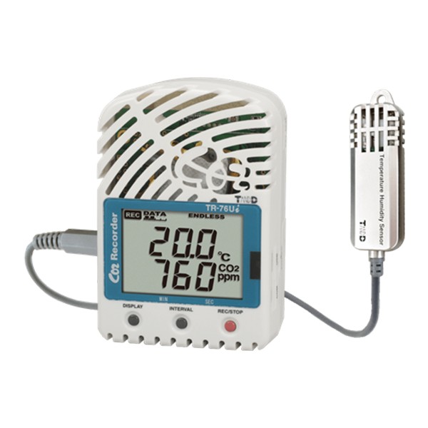 TR-76Ui-S 是一款三通道數(shù)據(jù)記錄器,可測量和記錄 CO2 濃度以及高精度的溫度和濕度。CO2 警告通知功能有助于為教室和建筑物的通風計時提供標準。該型號配有高精度溫濕度傳感器,非常適合除CO2 測量外還需要嚴格控制溫度和濕度的情況。還可以連接蜂鳴器和燈光等外部設(shè)備,以提供即時的現(xiàn)場通知。