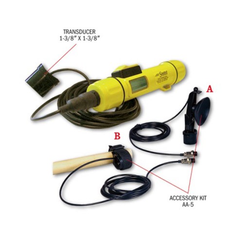 SM-5A外置傳感器聲納測(cè)深儀的傳感器位于12英尺(3.65米)的線纜末端,它可以被安裝在大型船舶的船體內(nèi)部,也可以安裝在船體外部的桿子或船鉤上。如果您離水不夠近,無法使用SM-5便攜式聲納測(cè)深儀的話,SM-5A外置傳感器聲納測(cè)深儀將會(huì)很有用。它的線纜和配件是防水的,但是主機(jī)不可在水下使用,因此請(qǐng)勿放入水中。可選的附件套件包含(A)用于外部船體安裝的堅(jiān)固的吸盤支架,以及(B)用于立桿或船鉤安裝的Velcro / 2-block附件。如果您需要一根長(zhǎng)度超過12 英尺(3.65米)的線纜,我們可以為您定制。