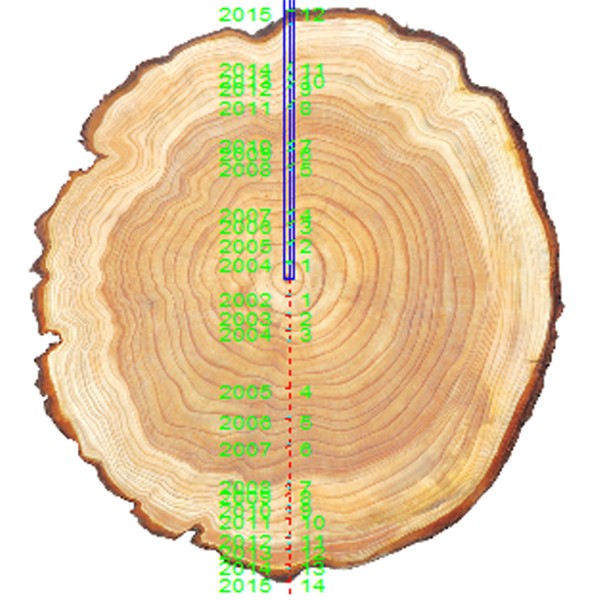 年輪基本參數 | 年輪計數、年輪環寬度、早材/晚材寬度,年輪環角度 |